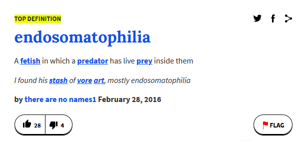My perspective is that endosomatophilia differs from vore in so much as it involves a sexual fetish focused on one or more people entering another person’s body without being eaten. If people are consumed then the act is classified as vore. Thus, endosomatophilia involves tiny people traveling inside other’s bodies like the characters from 1966’s “Fantastic Voyage” or 1987’s “Innerspace.”