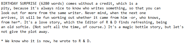 In summation, it’s safe to say that many of us have benefited from the works of authors who never received public acknowledgement for their efforts. Hopefully, the writer of Birthday Surprise will someday read this post and learn that myself, and undoubtedly many other people, loved their work. So, I will close out this post by expressing my heartfelt appreciation to those unnamed authors.