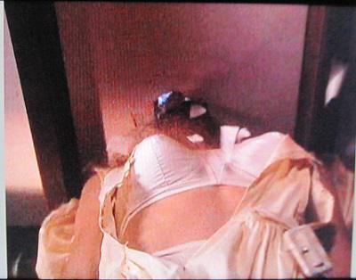 There is no nudity or sex. No other actor was present for Kay to interact with and she does not masturbate. This clip consists only of a brief growth scene featuring a woman becoming slightly taller and outgrowing a few pieces of clothing such as skin tone pantyhose and red shoes. The shoulder straps of her dress slip off, but the garment itself was not removed. Additionally, Kay notices that one of her chokers, a ring, and a chain bracelet are all too tight so she removes them. (NOTE: It would have been preferable if she busted everything apart, but it is understandable that some items, such as bracelets and rings, are more expensive to replace than nylons or shoes.)