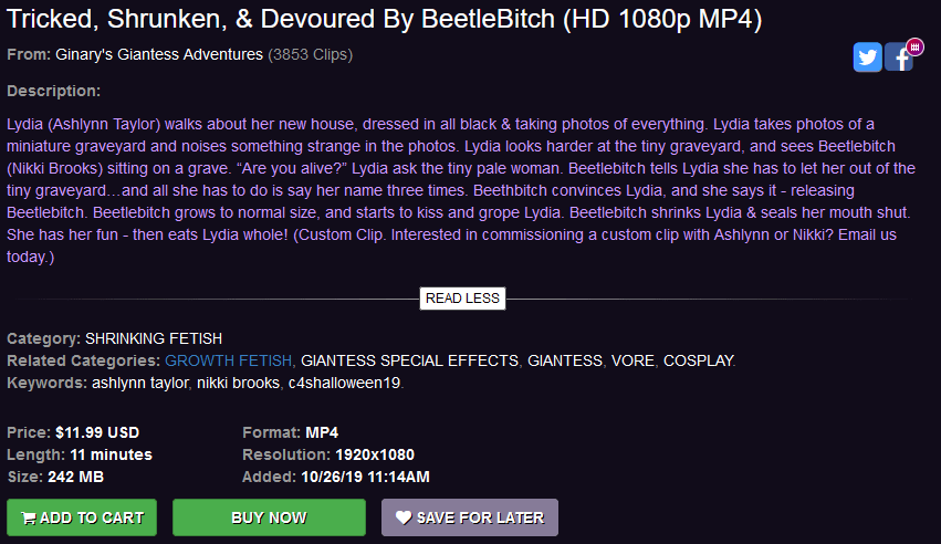 Ashlynn Taylor (as Lydia) and Nikki Brooks (as the ghost with the most) are the only on-screen cast members. Ashlynn also appeared in several other Ginary’s Giantess Adventures productions such as “Ashlynn Taylor & Sadie Holmes Find Little Men In Their Bed,” “Giantess Ashlynn Taylor & Roxanne Rae,” and “Giant Couple Tease & Torment You With Ashlynn Taylor & Russell Grand.” Similarly, Nikki has been featured in videos such as “Nice Giantess Turns Sadistic With Nikki Brooks & Terra Mizu,” “Shrunken Slaves Humiliated & Eaten By Nikki Brooks & Enchantress Sahrye,” and “You Are Shrunk By Evil Trio Whitney Morgan, Nikki Brooks, & Kitty Catherine.”