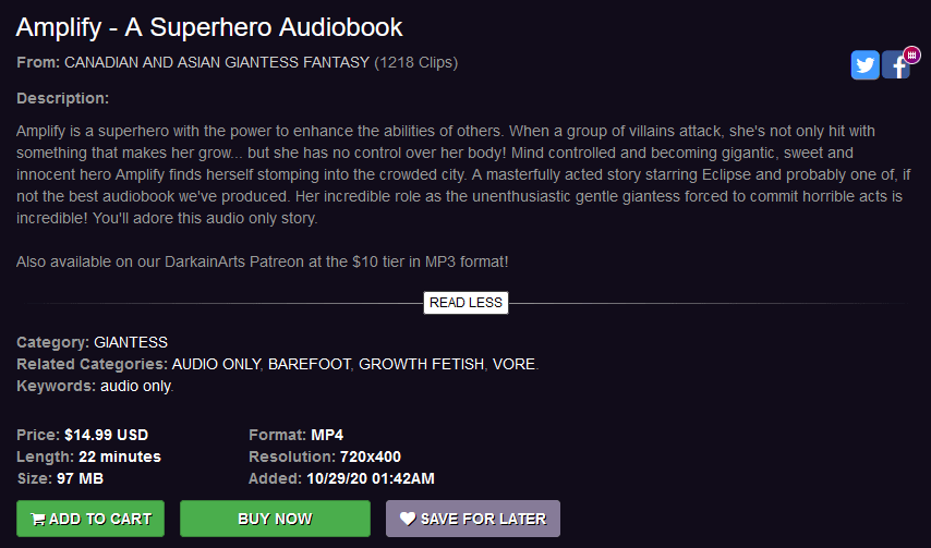 This audiobook can be purchased for $14.99 at Clips4Sale and FetishLands, while Patreon supporters can acquire this at the $10 level! Furthermore, a sequel in which Astrid plays a villain using Amplify’s power is scheduled to be released later this month. (NOTE: Astrid previously featured in an unaware audiobook entitled “Just Ants to Astrid.”)