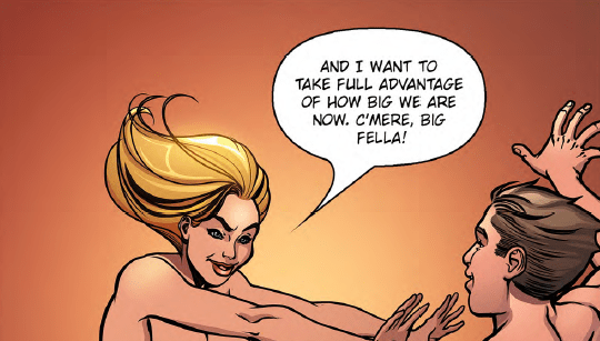 Additionally, there were several panels that had no backgrounds and were just rendered as solid colors. That is not altogether unique because many comic publishers, adult-oriented or otherwise, will save labor costs by occasionally omitting background details.