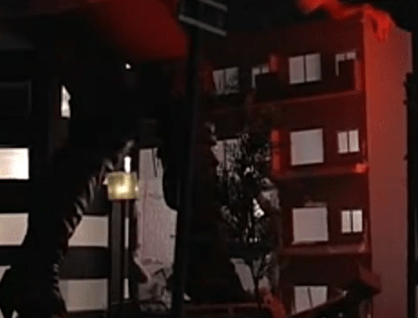 Unsatisfied with just burning the convenience store and some people, the giantess proceeds to attack an apartment building. The structure looked pretty good from afar, but its Styrofoam construction was eventually made obvious.