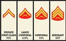 There are lots of details which I purposely side stepped. For one, military ranks can get confusing. For example, Staff Sergeant equates to E-6 in the Army and Marines, which use similar, but not exactly the same, chevrons. However, Staff Sergeant equates to E-5 in the Air Force and the insignia is significantly different. Scroll up to the Enlisted Rank Insignia chart to see what I mean.