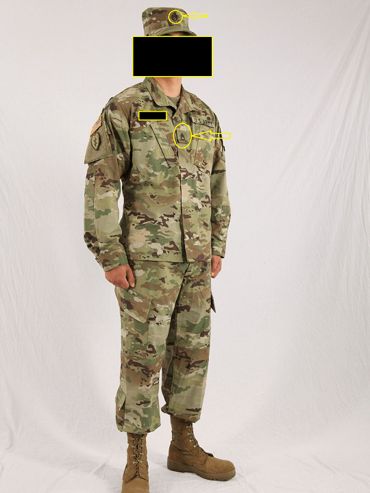 A recommended approach is to choose a military branch, a setting, and a time period. For the first example scenario, let’s pick U.S. Army soldiers in the field during 2020. A quick way to cobble together a reasonable representation is to review the “Uniforms of the United States Army” entry on Wikipedia. Looking under the heading for “Current designs” you will see a few paragraphs about the Army Combat Uniform and a photo of a solider wearing that uniform.