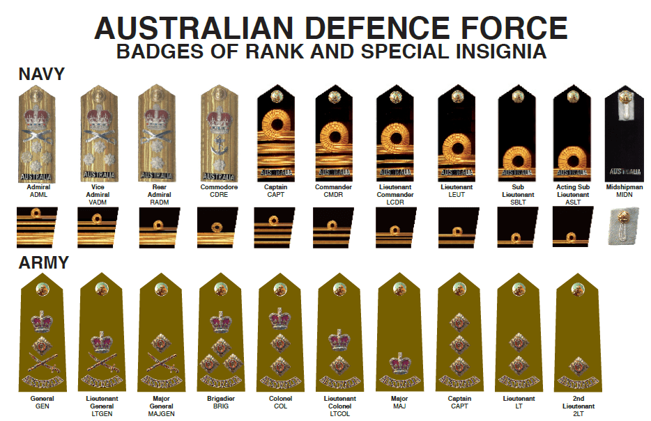 Of course, different countries use different insignia. However, it’s also easy to find reputable data for foreign militaries. For instance, below are a few charts from other countries: