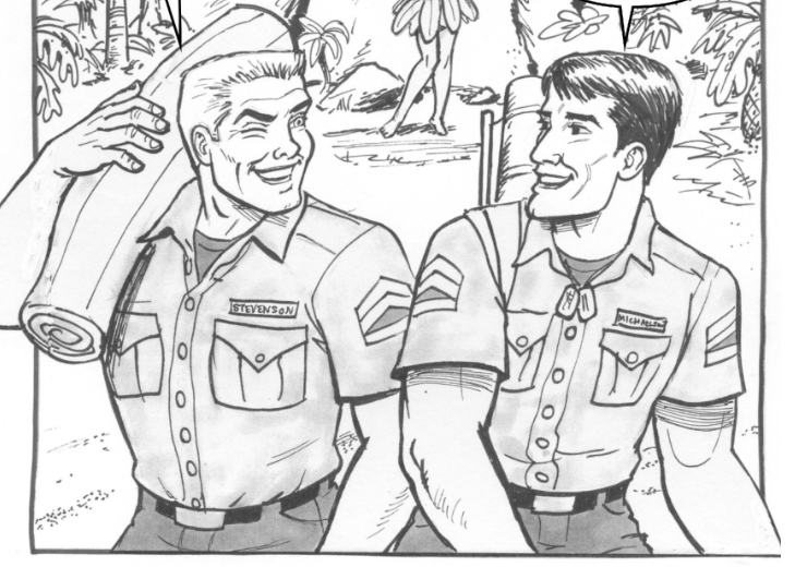 How to implement this? Well, let’s say that you’re drawing a page with a Marine infantry squad, all enlisted. Put private and corporal stripes on most of their upper arms and then put sergeant stripes on the last one as their leader. That’s it, you’re done!