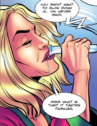 Krampus gives Scarlett the last of her personal supply of Kringle cum, which transforms the blonde into a shapely, renewed mini-giantess. (NOTE: Sadly, there was extremely little clothes destruction. Furthermore, it is a stretch to call her a mini-giantess. Clearly, she lost wrinkles and her breasts and butt became firmer and more pronounced. However, any change in height was difficult to gauge. Nonetheless, the “Mini Giantess” tag was included in the description.)