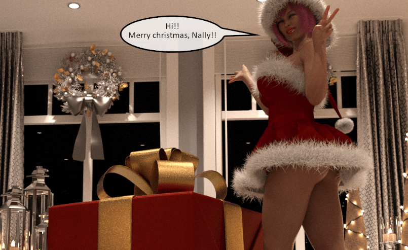 Upon catching Lady Santa in the process of leaving presents, Nally is given the gift of breast expansion and height increase! Nally impatiently wants to share this gift with her slumbering boyfriend John. When he does wake up it turns out that Lady Santa stuck around and was there to continue showering Nally with additional helpings of breast expansion and height increase.