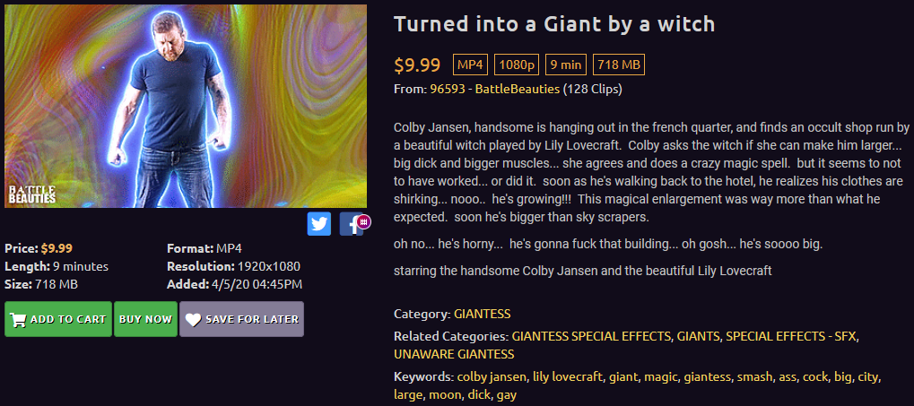 Overall, if you’re a fan of growing men acting cruelly and can overlook shabby green screen work then you may want to check out Turned into a Giant by a Witch. It can be purchased for $9.99 at the following link: https://www.clips4sale.com/search/clip/23031569/turned-into-a-giant-by-a-witch