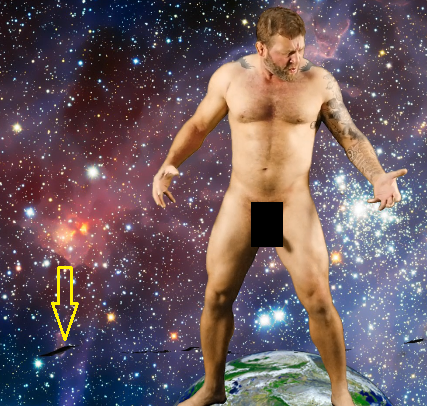 The crushing effect wasn’t great because for a brief moment the witch was still visible behind his calf when her entire body should have been underneath the sole of his foot. Nonetheless, there was a spray of blood and she was gone. Then the giant pretends to eat various people, no props were used to portray the tiny people so it was only the actor pretending to pick up victims and swallow them whole. He also talks about covering the city in cum, and accordingly strokes his cock until ejaculating. A visual effect was used to simulate his ejaculation. (NOTE: It might have been fun to show a normal-sized city dweller being covered by Colby’s cum. There are a few fairly cheap products which can be used to simulate cum, a few are listed at this page.) After cumming, his expansion continues until he stands on top of the entire Earth itself! (NOTE: At this point he pretends to put something up his ass, not sure if the unseen object was meant to be a satellite. Presumably, the original plan was to explain what he was doing via some forgotten dialogue.)