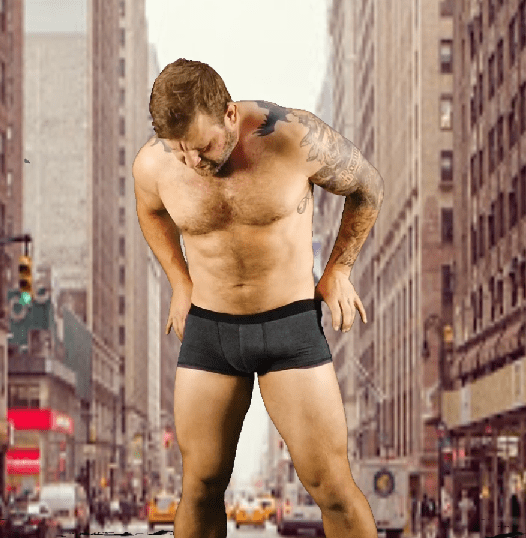Colby removes his garments before transforming; so, there was no clothing destruction. He wields his erect cock like a battering ram after achieving the height of a skyscraper. The special effects for the destruction was a mixed bag, there was some debris thrown about and explosions, but afterward the buildings looked no worse for the wear. Eventually, Colby finds the witch and complains that she overdid his growth. She isn’t given a chance to properly respond and is promptly crushed underneath his foot.