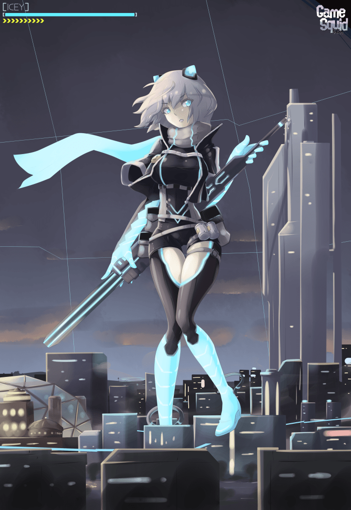 This idea of being a bit more true to the source was more extreme with Anna Graem from VA-11 HALL-A since it was all in pixel art, the colours are basically 1-to-1, I applied the glitchy text onto her body, and I topped it off with scan lines when the picture is magnified. Making it look close to the game itself was my task and I’d say I succeeded. It even got an audience with non-size fans (but then again, so did the Alma picture which was more lewd).