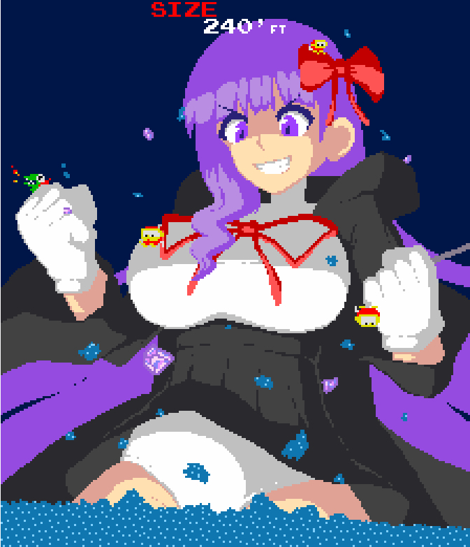 After the freakishly short run of the BB in Dig Dug crossover game aaand getting a good dose of nostalgia, I just recall remembering that BB having an actual giantess attack in Fate. Grand Order, I think? I don’t actually play the series. After confirming my memory, I decided to plan on a short growth sequence.