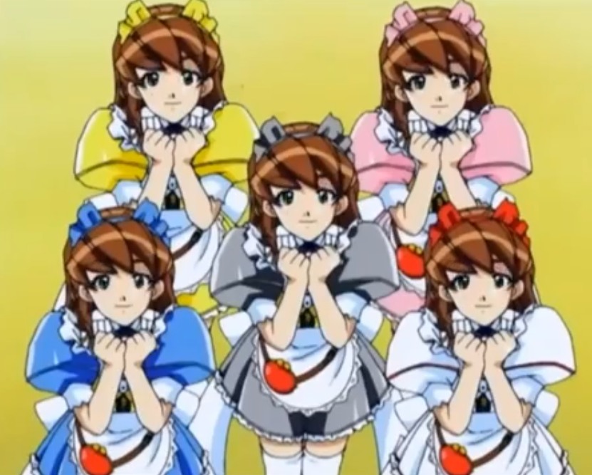 Fear not though, tiny women return with a vengeance in the OVA, the unaired episode 11. In that episode, five ( ❗ ) tiny Cyberdolls appear and are each given copies of May’s memory. Although, afterward they appear to manifest different aspects of the original May’s personality.