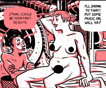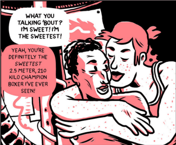 Now to the matter of sex between humans and Titans, that minor issue which my readers might be most interested in, this graphic novel does indeed showcase people of different sizes getting frisky!
