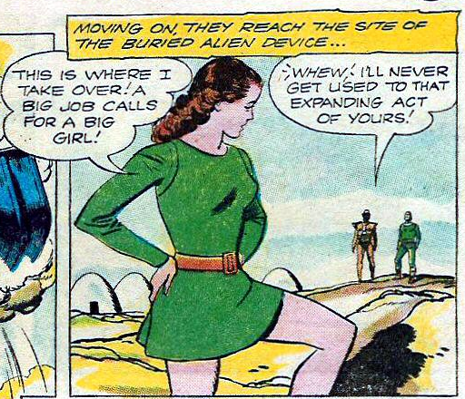 Thus, she wasn’t a giantess in the Golden or Silver Age, and she was a giantess on TV decades before becoming a giantess in print.