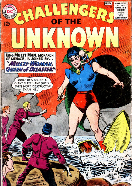 Not wanting organic life forms to hog all the giant-sized fun, the Challengers of the Unknown also fought the stupendously tall Multi-Woman robot on many occasions!