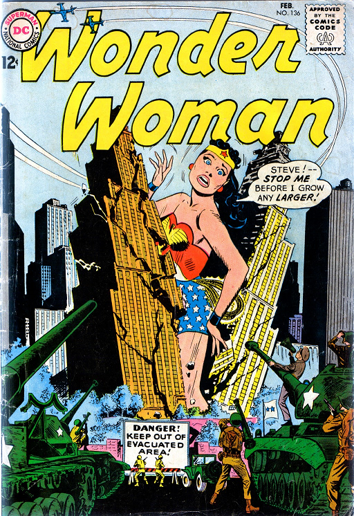 Next, we’ll transition to another Golden Age DC character whose run continued uninterrupted into the Silver Age. Time for some Wonder Woman comics! I like to dedicate a small bit of time to one of these greatest covers crafted in all of comic history. I strongly suggest that growth fans grab a copy of Wonder Woman #136 from February 1963!