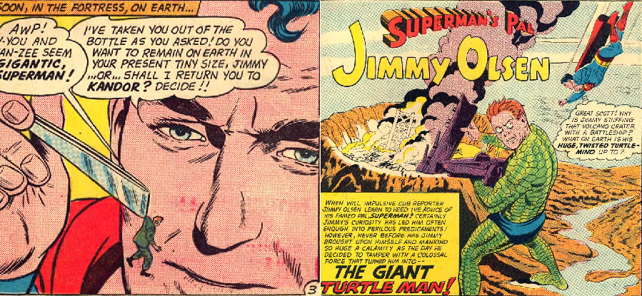 In addition to the last son of Krypton, his pal Jimmy Olsen, a junior reporter at the Daily Planet, went through his own fair share of dramatic transformations! Sometimes being both minuscule and gigantic within the span of a single issue!