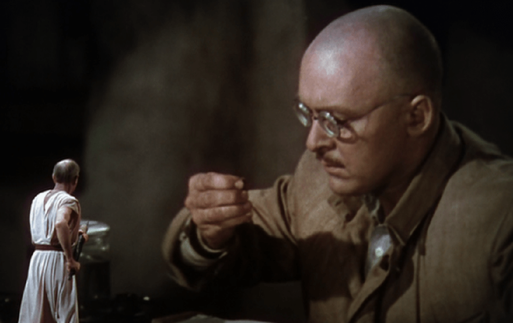 Additionally, at one point Dr. Bullfinch called Dr. Thorkel “Cyclops,” referring to the one-eyed monster in Homer’s epic poem the Odyssey. Dr. Bullfinch claimed that Thorkel was like the cyclops insomuch as Thorkel relied on his “size and strength.” That was the justification for this movie’s title. However, my suspicion is that Paramount wanted an attention-grabbing title and settled upon Dr. Cyclops. Then they tried to shoehorn in references. Toward that end, the scientists also broke a lens in one of the evil doctor’s eyeglasses and afterward he called himself a cyclops during the last five minutes. Regardless of the attempted justifications, the title was a poor descriptor. Not to put too fine a point on it, but one reasonably expects that a man called Dr. Cyclops should actually BE a cyclops 😉 Although, others might appreciate the metaphor.