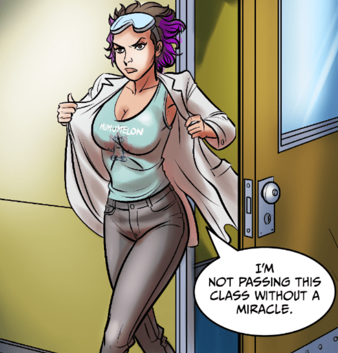 The tags for this story, like all BotComics stories, are meaningless and should be ignored. For instance, in the above description for Office Hours the tags include “Female / Female Sex,” “Male / Female Sex,” and “Masturbation.” However, nothing like that occurs. Maybe those lurid activities will be found in the later issues or maybe they won’t. For examples of other tag misuse I would point readers to series like “Beyond the Law: Reversal,” “MILF Milk,” and “Watered Down Science” which all have the Male / Male Sex tag but do not actually involve male-on-male action. (NOTE: Is it crazy to think that tags should be accurate?)