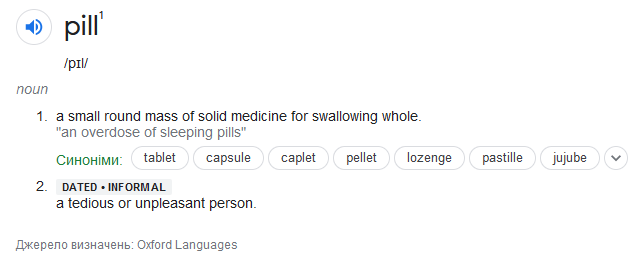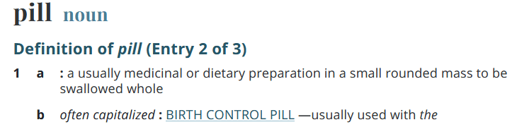 I checked a few dictionaries to see if any of them had a broader meaning for pill, but nope!