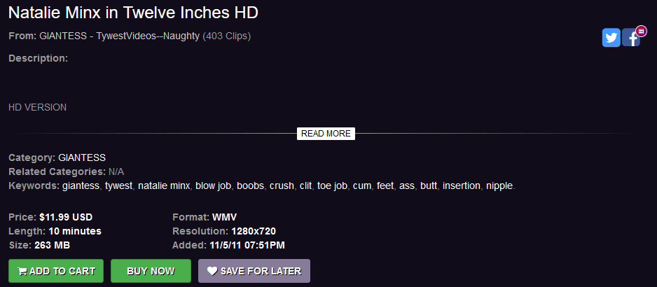 I posed the following question on Twitter: “Has any other creator taken up the slack caused by Tywest’s departure and created similar videos?” Sadly, I can’t think of any, and so far neither has anyone else. Of course, the aforementioned MissaX also produced hardcore content, and even made unique videos with giant couple sex. (NOTE: Check out this review of “Giant Sex.”) Yet, MissaX has not filmed anything size-related in several years. With any luck, someone will step up and fill this void in the size community.