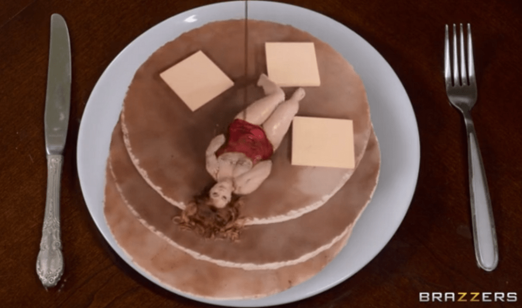 That leads to a fun scene in which the wife poured maple syrup on top of Summer who was lying on the flapjacks: