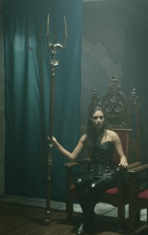 Opposing the good guys is Magda the Mad, ruler of Atlantis, who wants to marry Prince Charming (Snow White’s boyfriend) in order to achieve dominion over the entire world! Magda has a small army of mermen who all wear masks which undoubtedly come in very handy when the director needs a lot of disposable goons, but only have a limited number of actors. Ergo, with masks the same person can play multiple thugs and wouldn’t be recognized. (SIDE NOTE: The mermen look more like extras in a Roman gladiator movie than underwater dwellers, but presumably the costume budget was minuscule.)