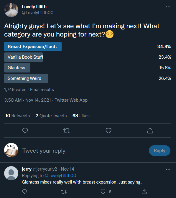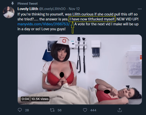 The nurse even provides set-up for yet another Futa Chronicles, with the next one focusing on Lilith going to see a Doctor, presumably played by Lilith. (NOTE: After releasing Nurse’s Office, Lilith held a poll on Twitter. Breast Expansion (B.E.)/Lactation won the most votes; so, a B.E. clip should be released next.)