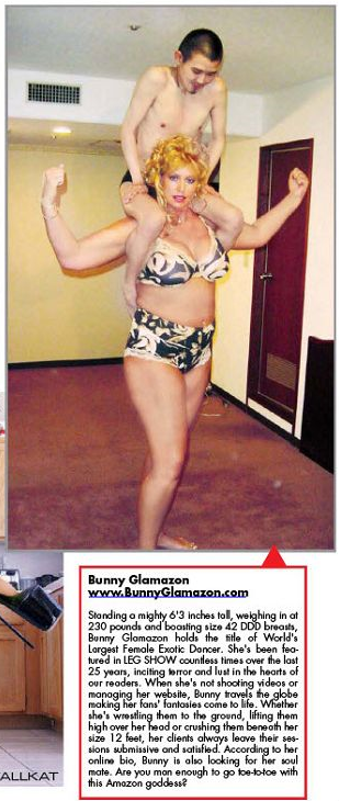 This issue features brief interviews with E10, a “Europe-based” (that’s rather vague) artist who also wrote giantess fiction; Gary Pranzo, founder of Media Impact LLC; and James Woodard, owner of the Amazons Arena. It also includes several picture sets of tall women such as Bunny Glamazon and Natasha the Giantess: