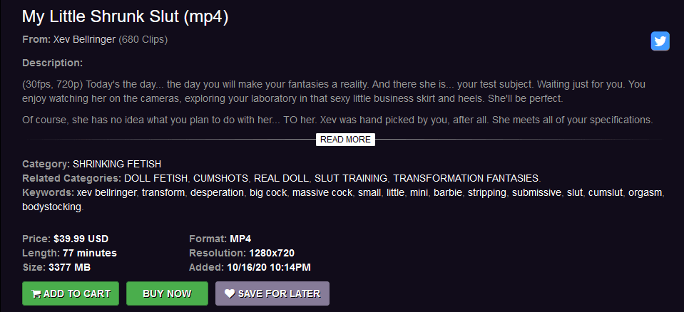 Therefore, let’s dig further into that clip. Let’s examine “My Little Shrunk Slut,” a 77-minute long production which was first released in mid-October 2020.