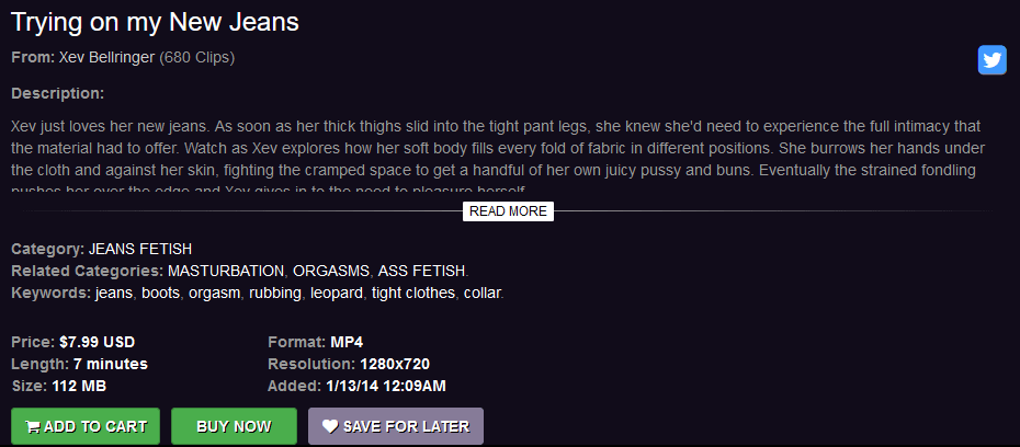 Today, we’re looking at a shrunken woman (SW) video from a new creator, Xev Bellringer. (NOTE: “New” in this case meaning that There She Grows has not previously reviewed her videos before.) Xev has been producing adult content for many years and first started selling video clips, such as the following, on Clips4Sale in mid-January 2014.