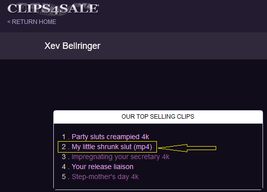 Xev Bellringer has since created nearly 700 videos which include male (M) and female (F), FF, and MFF sex scenes. Size content is only in a few of those, but one of those ranks highly on the list of top-selling clips: