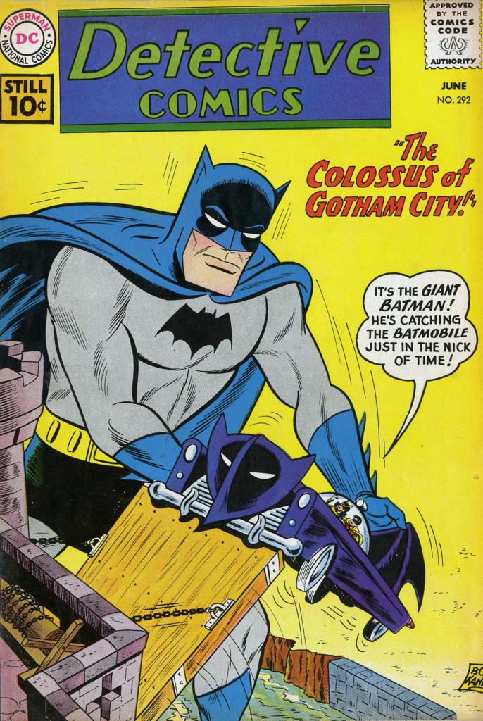 I’m feeling a bit silly and what better to satisfy sizey silliness than with Batman hijinks pulled from the Silver Age! First off, we’ll explore the perils of strange gases within the pages of Detective Comics No. 292 published in June 1961. It’s a thoughtful, cautionary tale concerning the perils of exposing costumed vigilantes to “upper atmosphere samples.” Of course, as we all know, such odd vapors cause rapid growth!