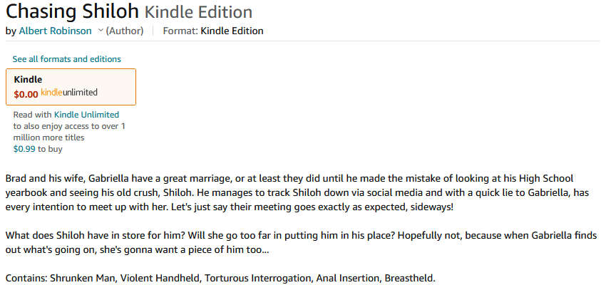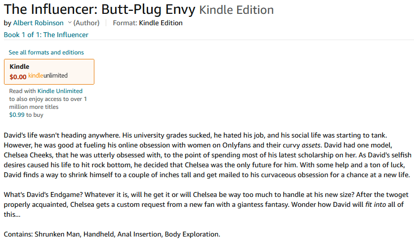 Overall, The Influencer: Butt-Plug Envy and Chasing Shiloh are recommended for fans of women with big butts mistreating tiny men. Of the two, The Influencer: Butt-Plug Envy was my favorite because it provided a more satisfactory ending. As previously mentioned, they are quite short. Fortunately, they are also cheap, each costing only a dollar (technically 99 cents).