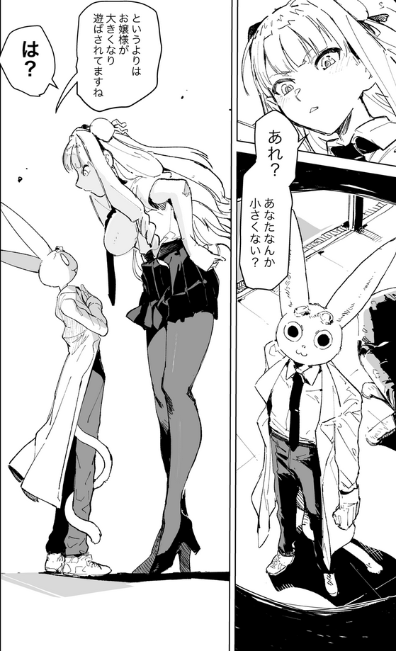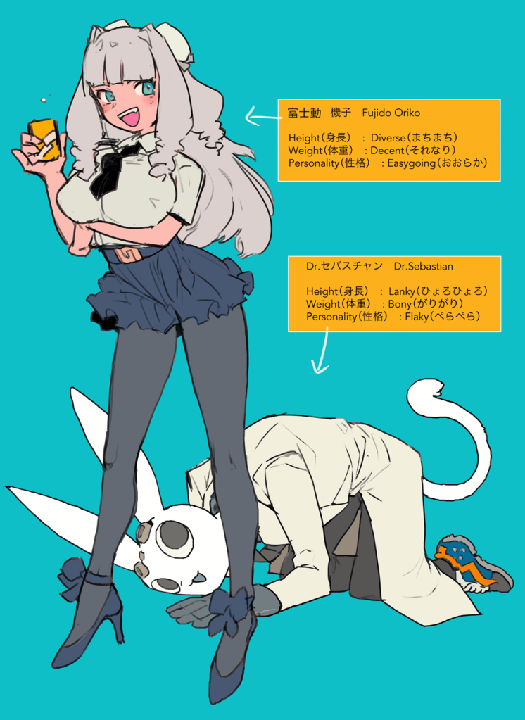 Dr. Sebastian is a member of the Fujido Research & Development (R&D) division and Oriko’s personal butler. He is an anthropomorphic character with bunny ears and a cat tail. The rest of the world appears to be human, with the exception of the monsters which Oriko sometimes fight. Again, this is a comedic series aimed at teenage boys and thus little to no explanation was given for the sudden appearance of a building-size invader, an enormous tentacled sea creature, etc.