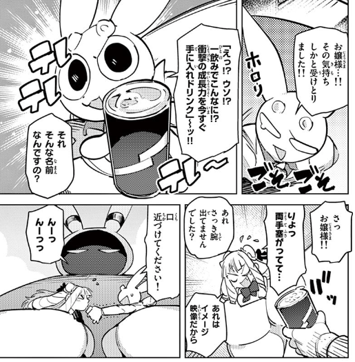 Given that Fujido is a beverage company and Sebastian works in its R&D division, the growth formula takes the form of a canned energy drink. (NOTE: The panel below was taken from Chapter 2 and was Oriko’s second battle against an oversized beast.)