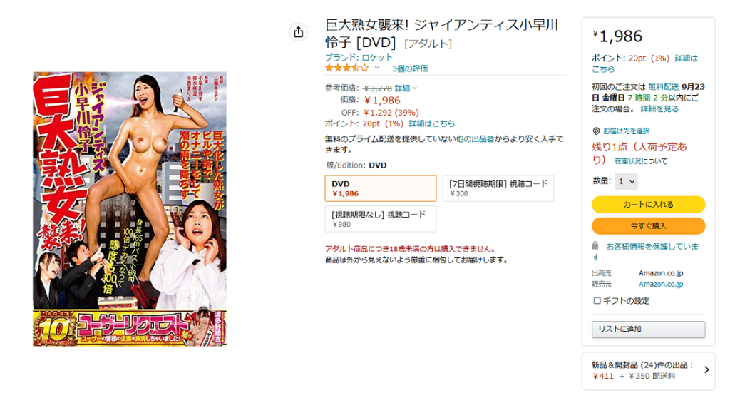 Overall though, the positives outweighed the negatives and therefore Giant MILF Attack! Giantess Reiko Kobayakawa is recommended. It can be streamed online and DVD copies were also available for ¥1,986, about $13.89, on Amazon Japan in mid-September. (Click here for the Amazon Japan link.) A region-free or Japanese DVD player is required to play the DVD.