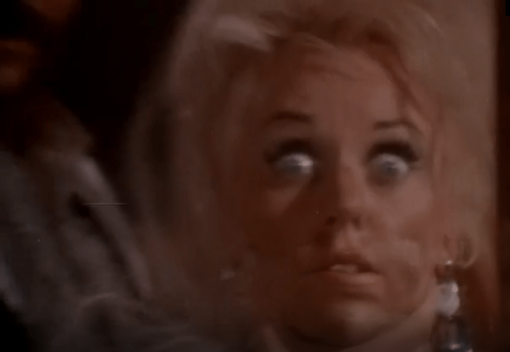 Upon his return two years later, Donna pretends to be drunk and Ralph accuses her of being a whore. Ralph then slaps Donna and forces her to look in the mirror. It wasn’t obvious how the viewers were intended to interpret this scene. Her reflection was shown very briefly, but it looked like someone smeared lipstick on her face. Although, she reacted with terror so, based on that strong response, perhaps the implication was that there was blood all over her face. However, we never saw her being hurt. So, where did the blood come from? Or was the mess on her face merely dirt meant to imply that chronic substance abuse prevented her from practicing personal hygiene? But then she asks Ralph if it was a good performance; so, apparently it was just practice for a performance at the party.