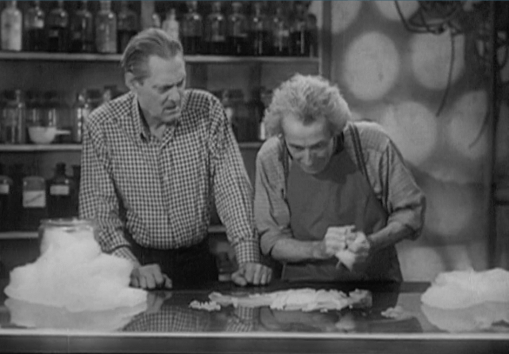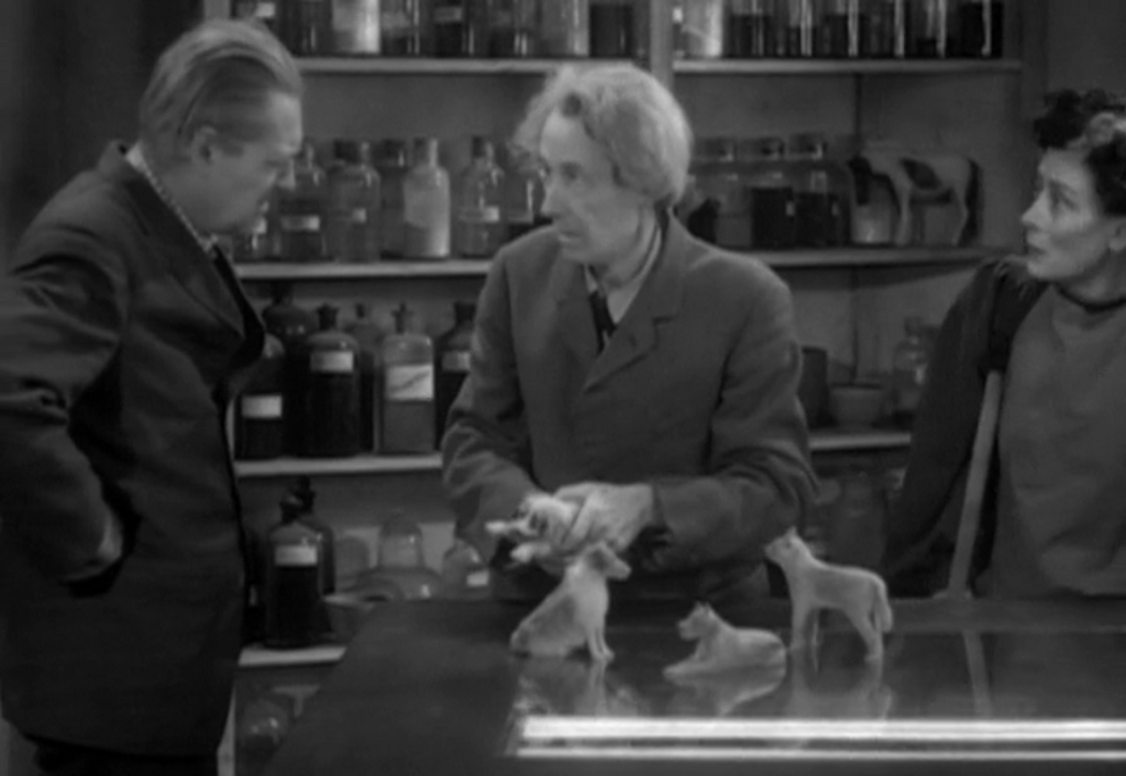 Marcel invented a process to reduce things to one-sixth size by reducing all the atoms in a body simultaneously. When you put it that way shrinking someone sounds easy, not much to it! Unfortunately, this has a detrimental effect on memory and will, changing living organisms into mere puppets able to move only by the minds of others. Upon arriving at his laboratory, the obsessed scientist demonstrates his work to Paul.