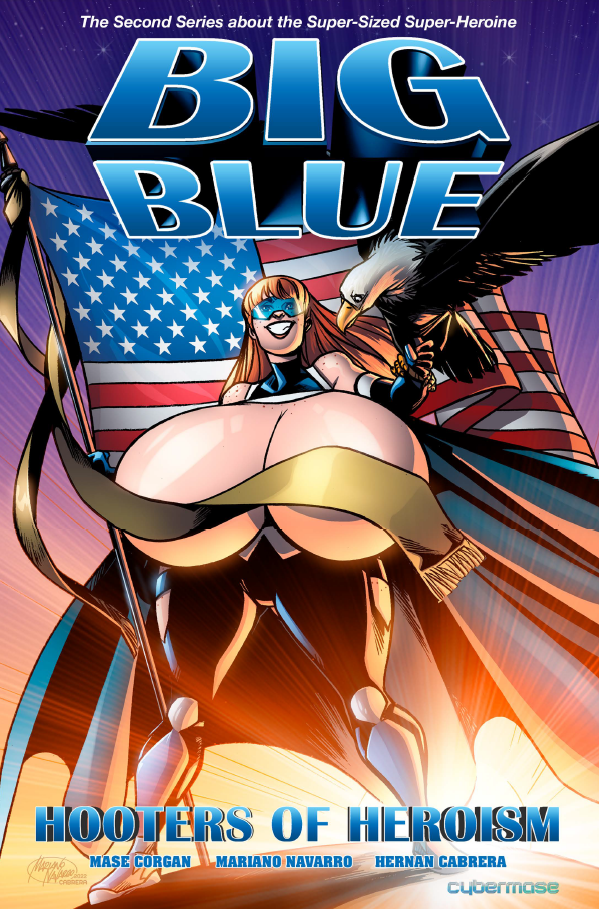 This Big Blue series showcases a buxom super-powered vigilante whose creation took inspiration from iconic American comic book characters. This series is focused on an exceedingly voluptuous blue-skinned alien who fights evil-doers with her “Juggs of Justice.” Her name is Yaelin, Tara Taylor when in human form, and she is partnered with a bespectacled man named Renato. Yaelin is from the planet Gozanganar, a world without males where women have giant breasts. In addition to evil Gozangans, Yaelin also fights an alien from a sister race who has a flat chest, but can shot lasers from her nipples. Yet another alien was a muscular mini-giantess. So, there was a nice variety in the extraterrestrial villains attacking our world.