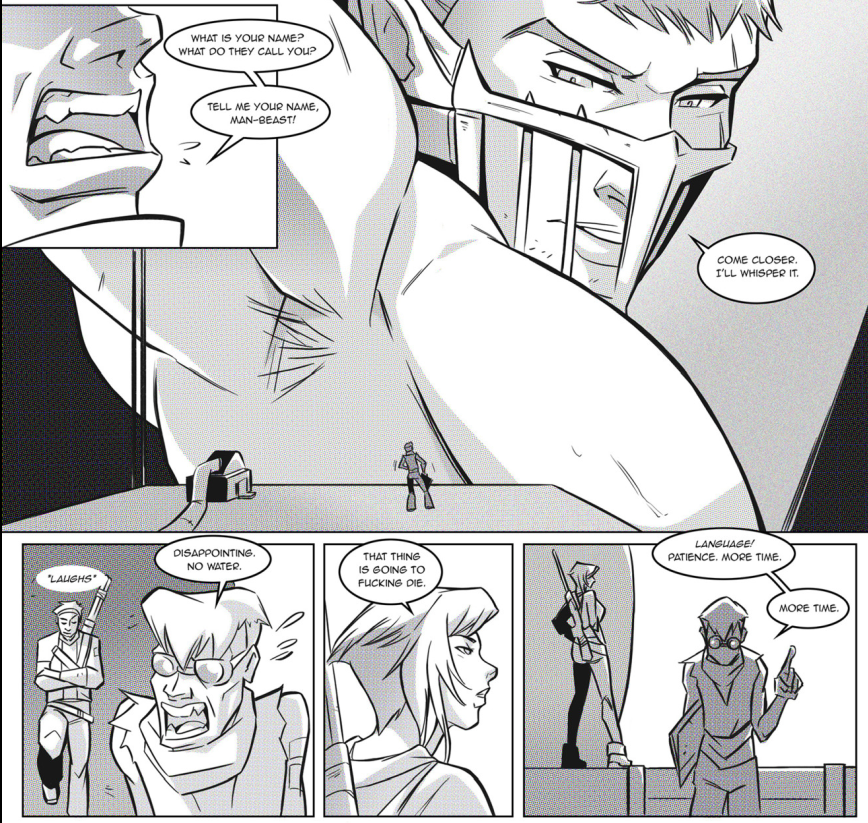 As far as potential room for improvement, the most obvious would be to color the pages. Being in only black and white wasn’t a deal breaker. That fact should be clear because this made the Top Ten! However, color would have made this better. Furthermore, it’s somewhat strange to see barren wastelands which should be bathed in overwhelmingly bright, burning sunlight depicted in achromatic drawings.