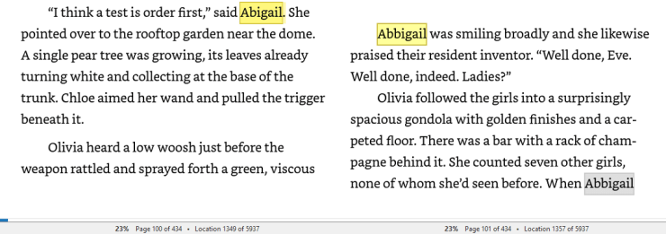 Google the proper spelling of “Abbigail” and it appears that “Abigail” is the “correct” rendition. That said, maybe it was spelled differently in the Victorian era? The name Abigail dates back over 2,000 years to the Old Testament so that explanation is unlikely. Of course, authors can spell names uniquely to add flair. Personally, I love the name of DC Comic’s 25th century supervillain Eobard Thawne (a.k.a. Reverse-Flash), because “Eobard” sounds like a futuristic version of the modern “Edward.” However, Abbigail looks like a misspelling and made my eye twitch.