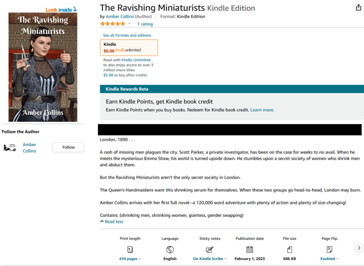 Altogether though, the positives outweighed the negatives. The Ravishing Miniaturists can be purchased for $7.99 at the following link: https://www.amazon.com/Ravishing-Miniaturists-Amber-Collins-ebook/dp/B0BQJPLT2D or read via Kindle Unlimited.