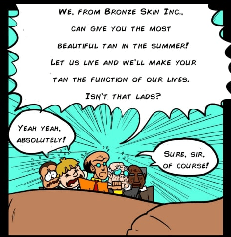 Later issues drift away from the tanning company. Initially, Bronze Skin employees spend their time spreading tanning lotion over voluptuous giantesses.