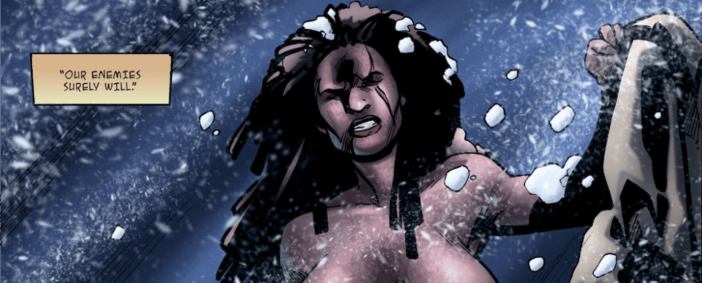 Additionally, there were a few spelling errors. None were egregious, but given that this is primarily a visual work it was disappointing that errors were still present despite the small amount of text. Put another way, it should have been easy to review and correct errors when there were only a few words to check. However, none of the errors prevented understanding an event or derailed the plot. Presumably, the lack of an editor or reviewer led to this problem.