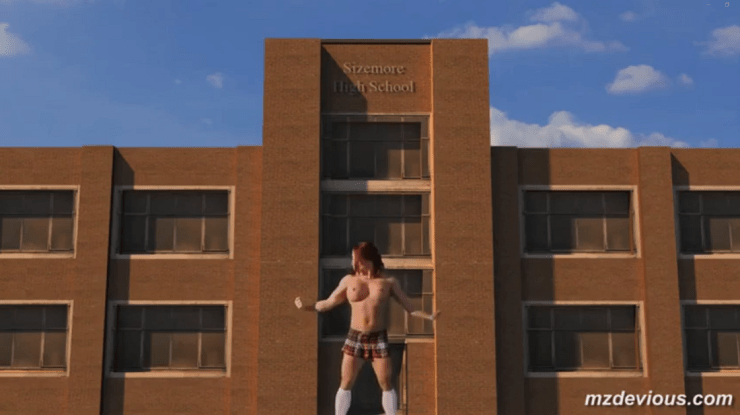 The majority of the video clips focuses on domination and humiliation themes with titles like “Hi, Loser,” “His Dick is Bigger,” and “Used and Discarded.” Today we’re looking at Schoolgirl Giantess Revenge, one of the few giantess-themed productions. (SPOILER ALERT: Although, Mz Devious only completed a few giantess clips the post-production work in this example, done by James Cook FTVideo.com, was not half bad!) This clip is 8-minutes long and was released in late May 2013.