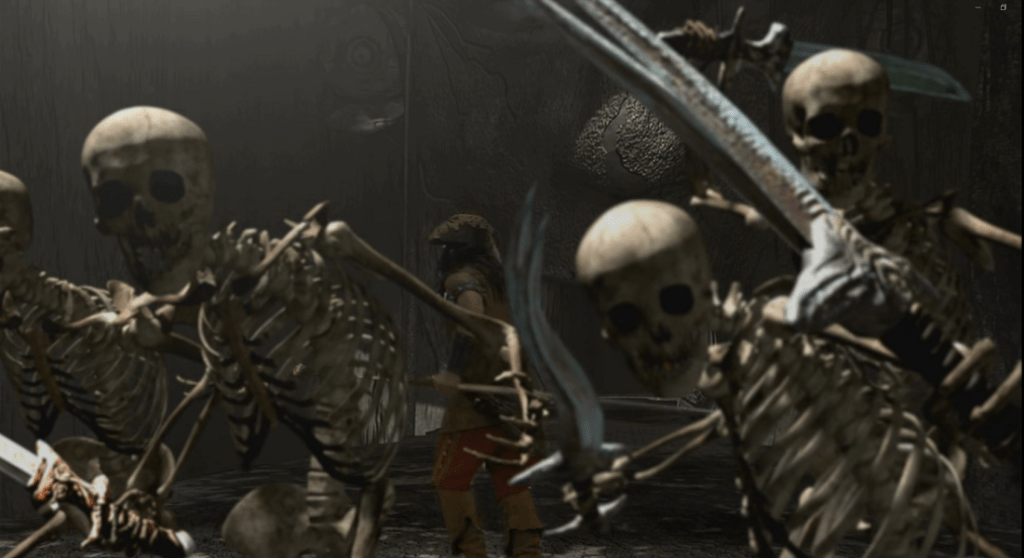 Furthermore, the costumes and sets were more than adequate. The inclusion of computer generated imagery (CGI) was also relatively effective, particularly given that this was 2000’s era. The digital special effects, while not completely believable, were done well enough to convey what was happening. CGI rendered animated skeletons which were sicced upon the valiant pirate hunters. It was also used for a ship-to-ship battle.